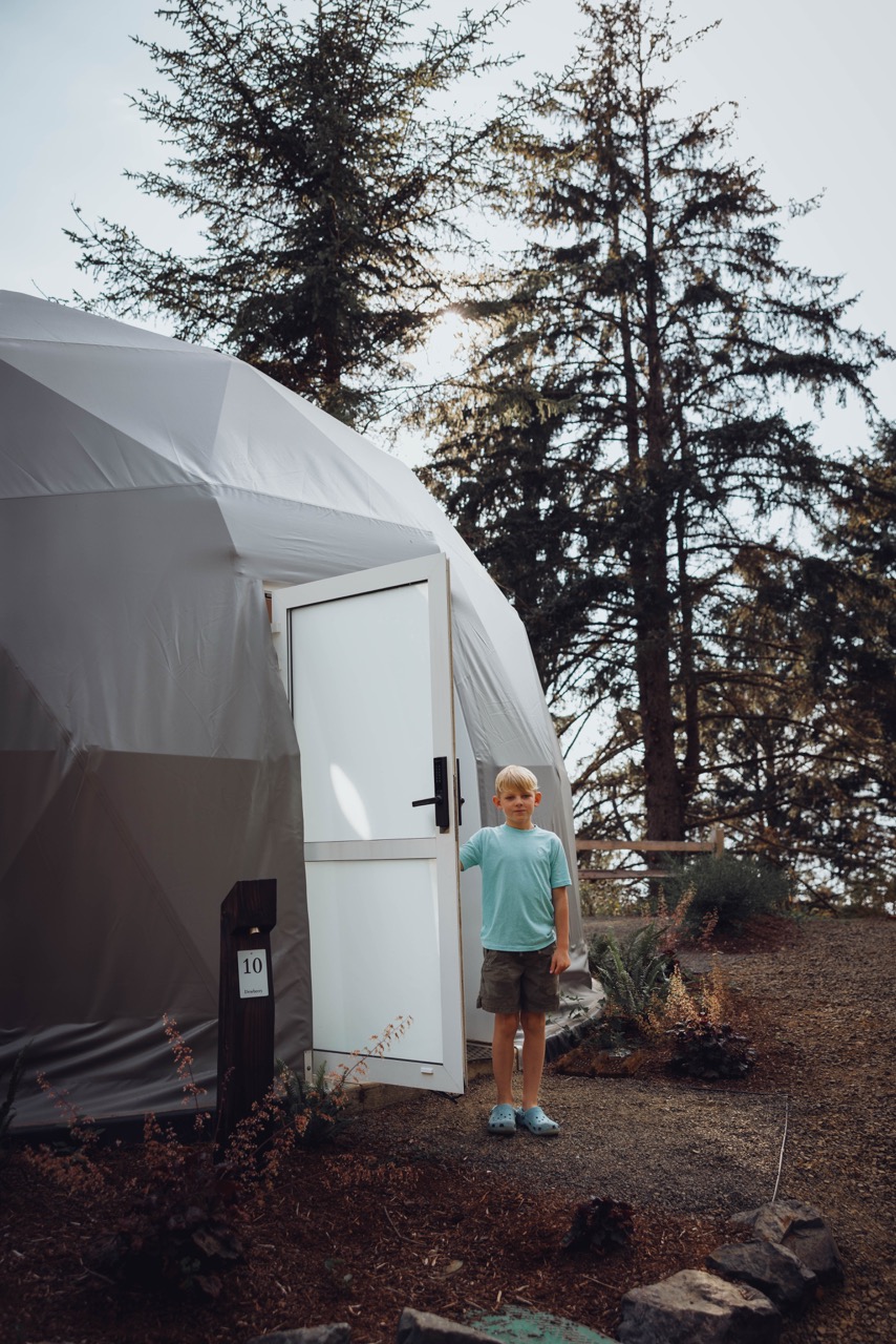 Welcome to Two Capes Lookout on the Oregon Coast, just minutes from Pacific City. This glamping property features geodesic domes and mirrored cabins with ocean views. Expect spacious layouts with a king-size bed, a trundle, pull-out couch, Wi-Fi, a mini-kitchenette, ample storage, and beautiful grounds overlooking the water. Stay tucked into the serene coastal forest, then take a five-minute drive into Pacific City for coffee, breakfast, and sweeping ocean vistas. Climb the dune hills, watch for whales, and soak it all in—this place is stunning.